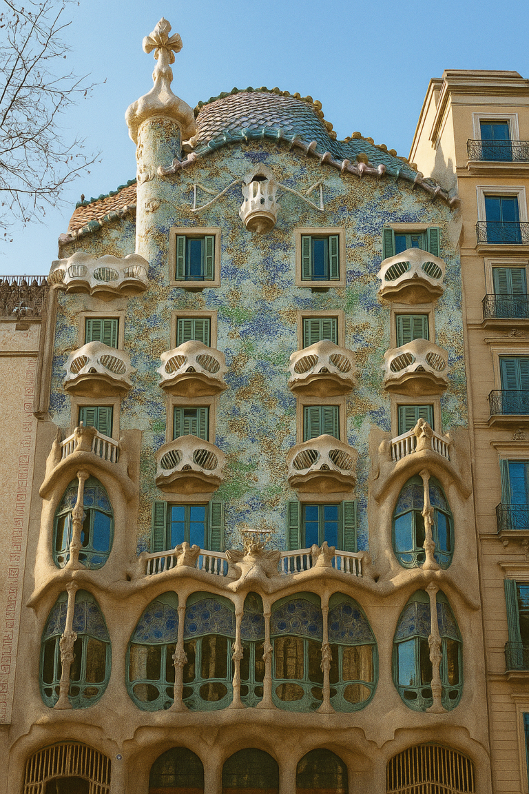 Located in the vibrant heart of Barcelona, Casa Batlló is more than a building—it’s a living artwork. Its colors, textures, and organic forms invite exploration, curiosity, and quiet reflection. Every detail, from bone-inspired columns to dragon-scale tiles, is crafted to engage the eye and soothe the mind. Inside, natural light filters through stained glass, creating a kaleidoscope of color across curved walls and flowing staircases.