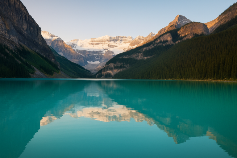 🌿 Calm Moment – Close your eyes. Imagine turquoise waters cradled by snow-dusted peaks. Lake Louise glimmers in the morning sun, quiet and still, inviting your mind to breathe.