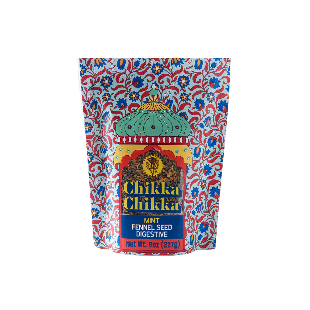 Meet Chikka Chikka, a flavorful South Asian-inspired digestive snack crafted to refresh your breath, support digestion, and gently curb hunger. Made with maple-roasted fennel seeds, split coriander seeds, invigorating peppermint, and nutrient-rich spirulina, this tiny tin delivers a crunchy, aromatic experience that can be enjoyed after meals, brewed as a tea, or sprinkled as a topping.