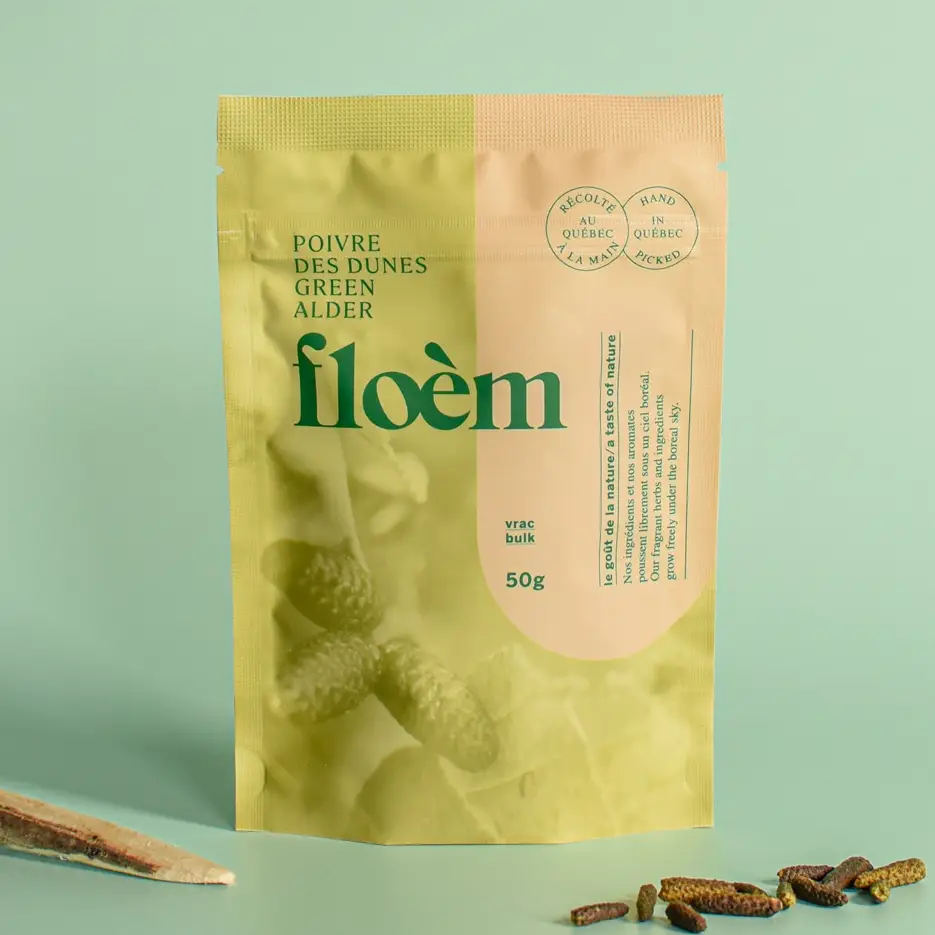 Discover the complex, aromatic charm of Dune Pepper, also known as alder, a forest shrub native to northern Quebec. Harvested for its catkin flowers, this versatile ingredient offers a resinous, fir-like flavor with peppery, floral, citrusy, and slightly bitter notes. Celebrated in high gastronomy, it brings the essence of the boreal forest to teas, sauces, desserts, drinks, and more.