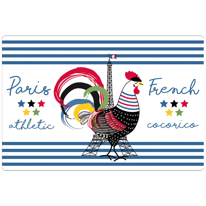 This vibrant French Cocorico placemat commemorates the Paris 2024 Olympic Games with the French colors. Crafted from durable polypropylene and coated with a certified food-contact varnish, it’s both practical and stylish, protecting your table while adding a festive touch.