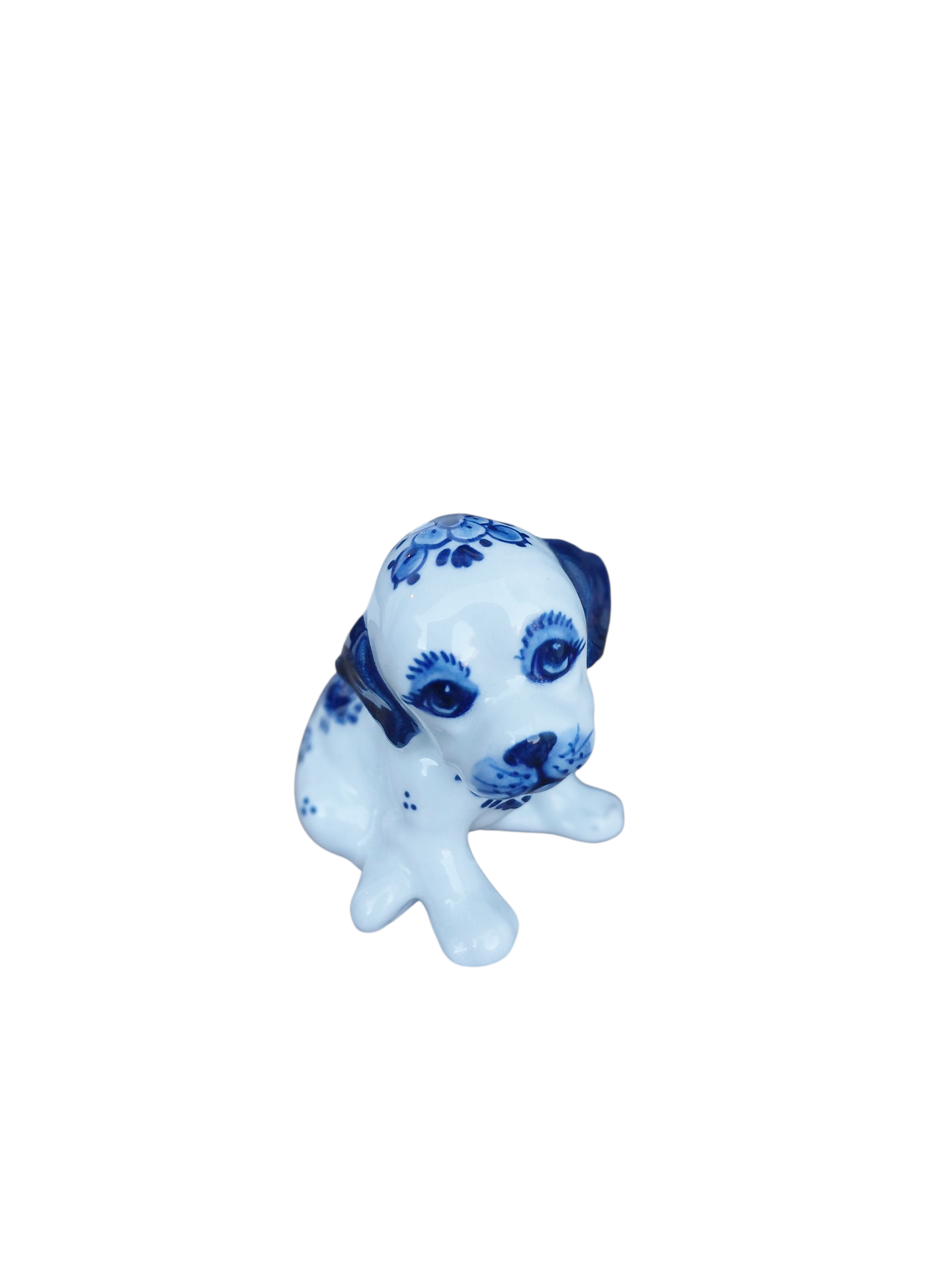 Hand-Painted Delft Blue Puppy Figurine