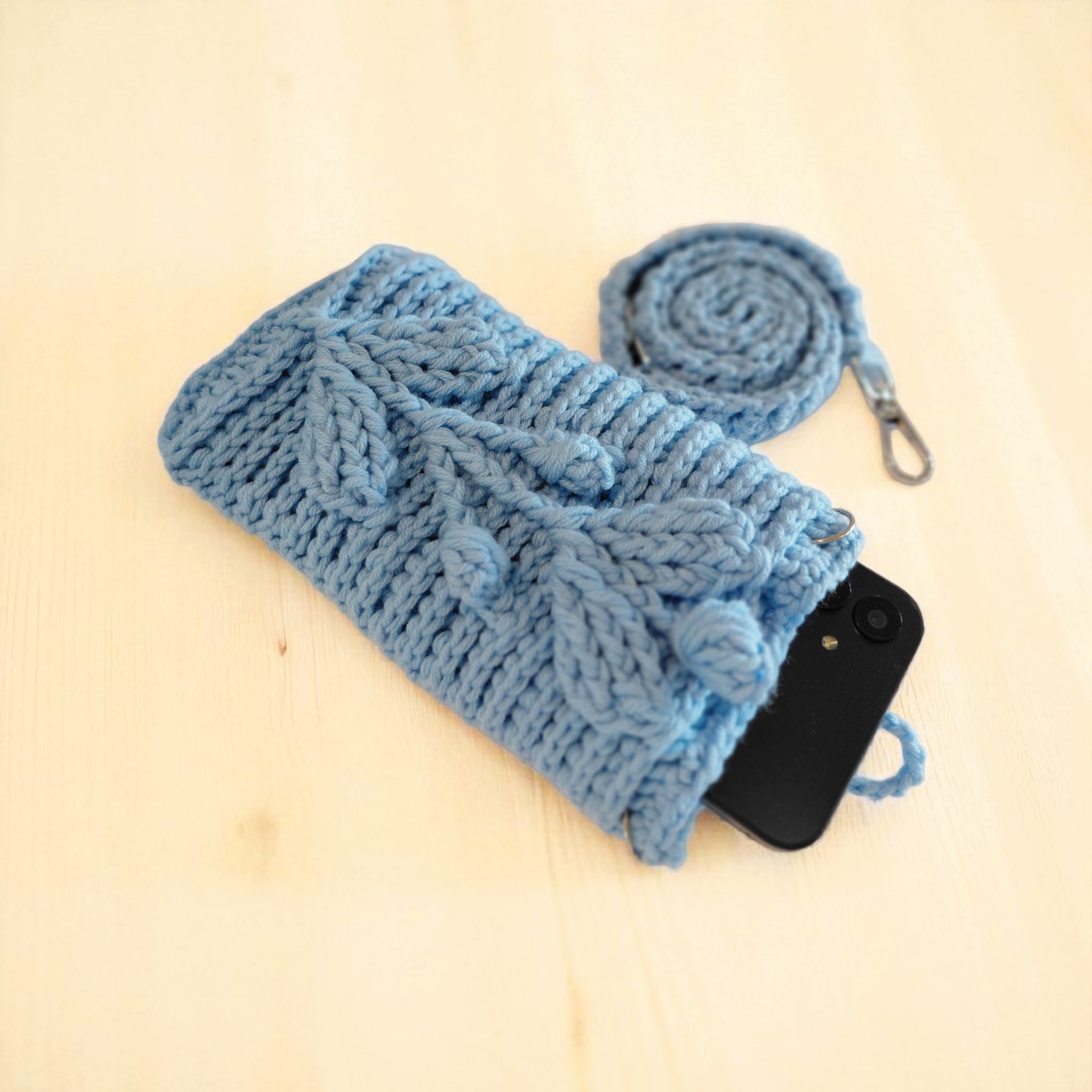 Experience cozy, nature-inspired elegance with this handmade phone pouch in vibrant colors. Featuring a charming 3D-leaf design and secure knotted string closure, it can be worn around the neck, as a chic crossbody, or used as a standalone phone protector—perfect for travel, everyday essentials, and effortless style.