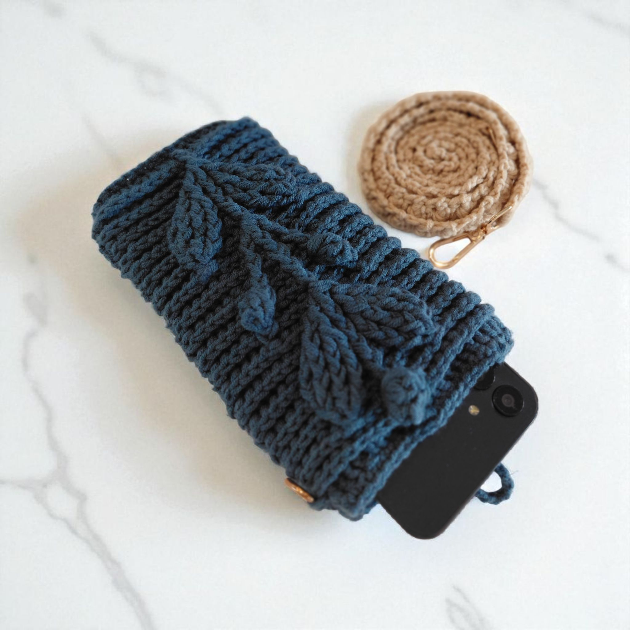 Experience cozy, nature-inspired elegance with this handmade crochet phone pouch in vibrant colors. Featuring a charming 3D-leaf design and secure knotted string closure, it can be worn around the neck, as a chic crossbody, or used as a standalone phone protector—perfect for travel, everyday essentials, and effortless style.
