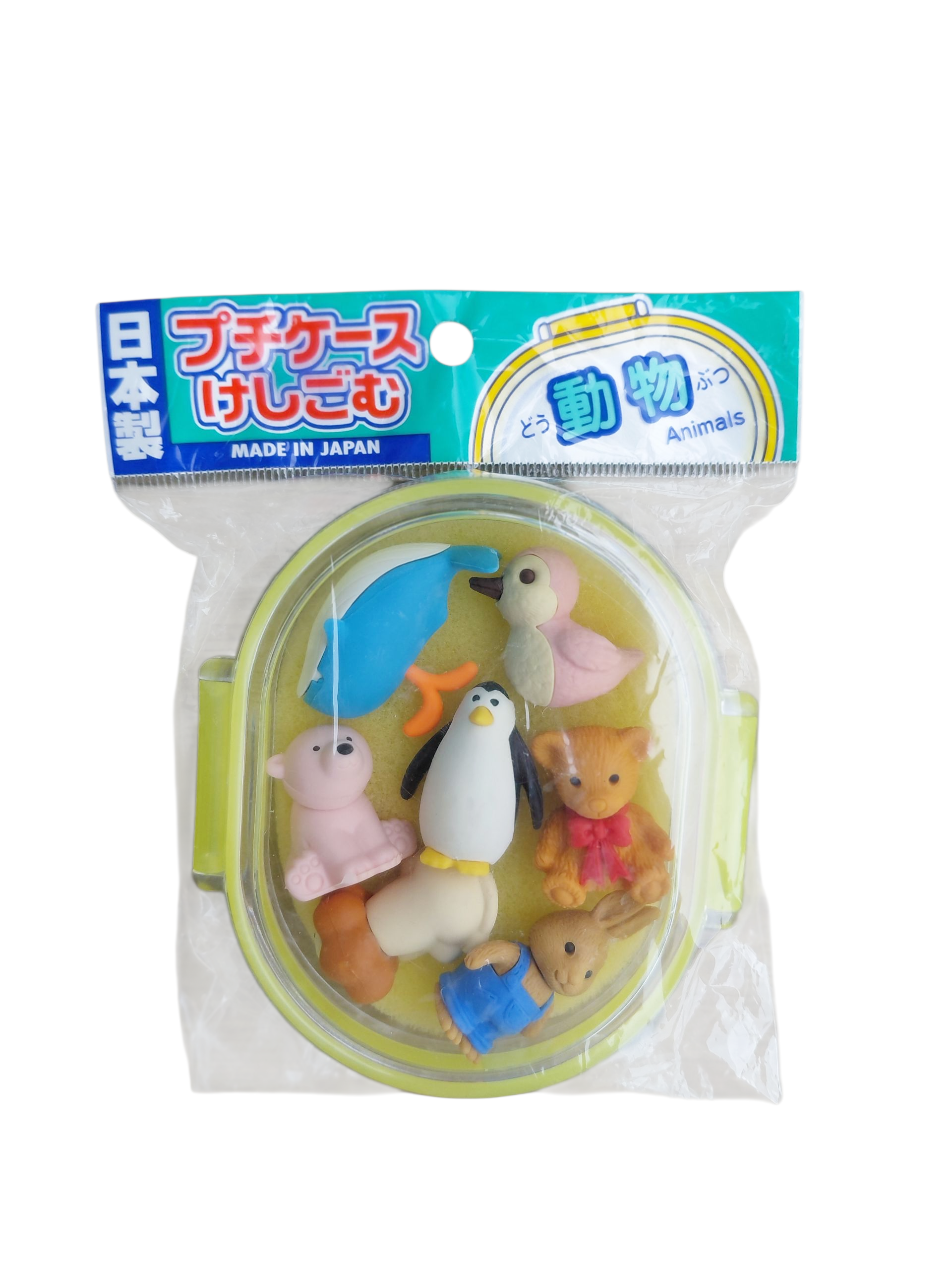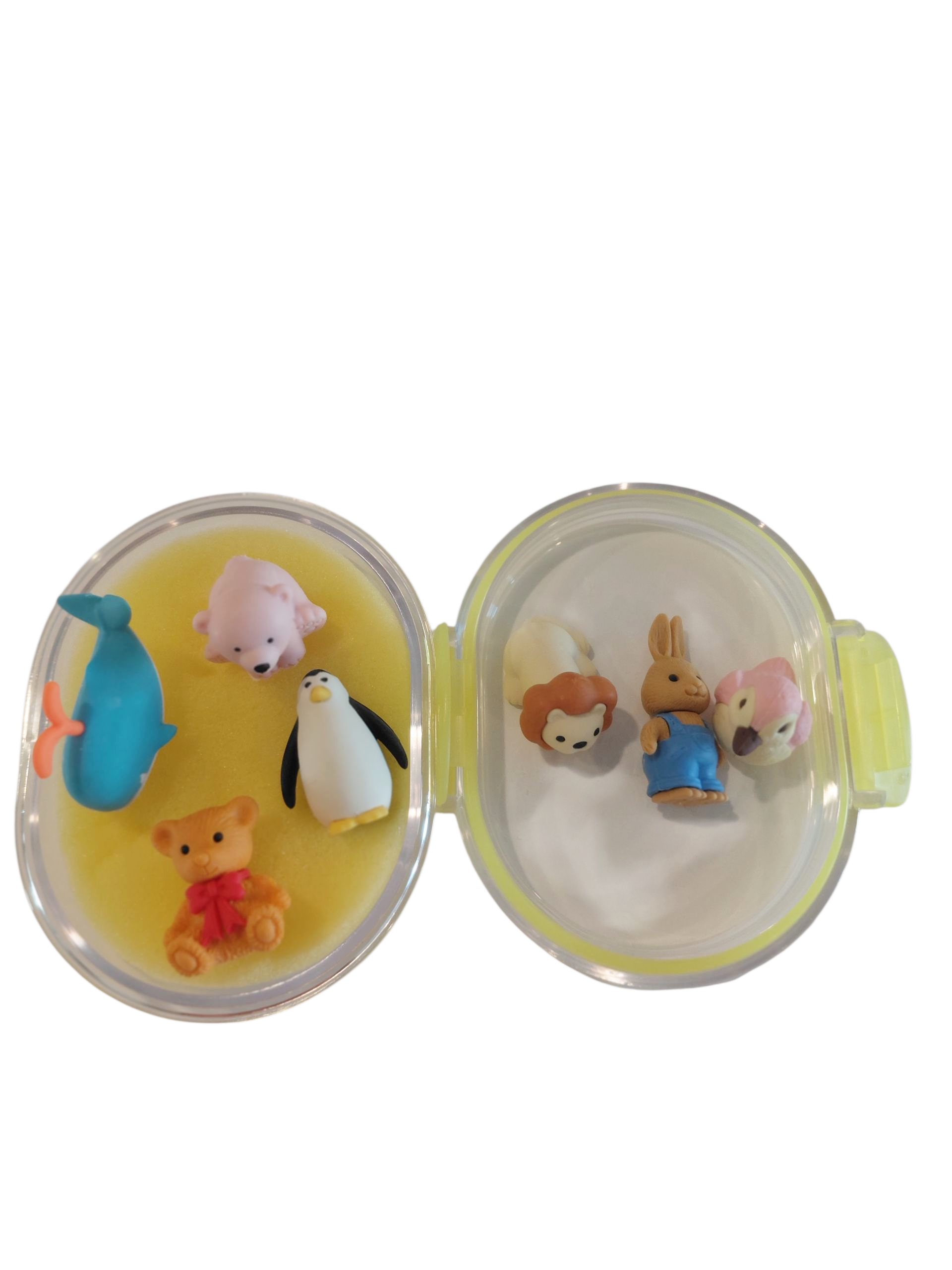 Iwako Animal Puzzle Erasers (7-Piece Set) in Cute Collection Box (Yellow)
